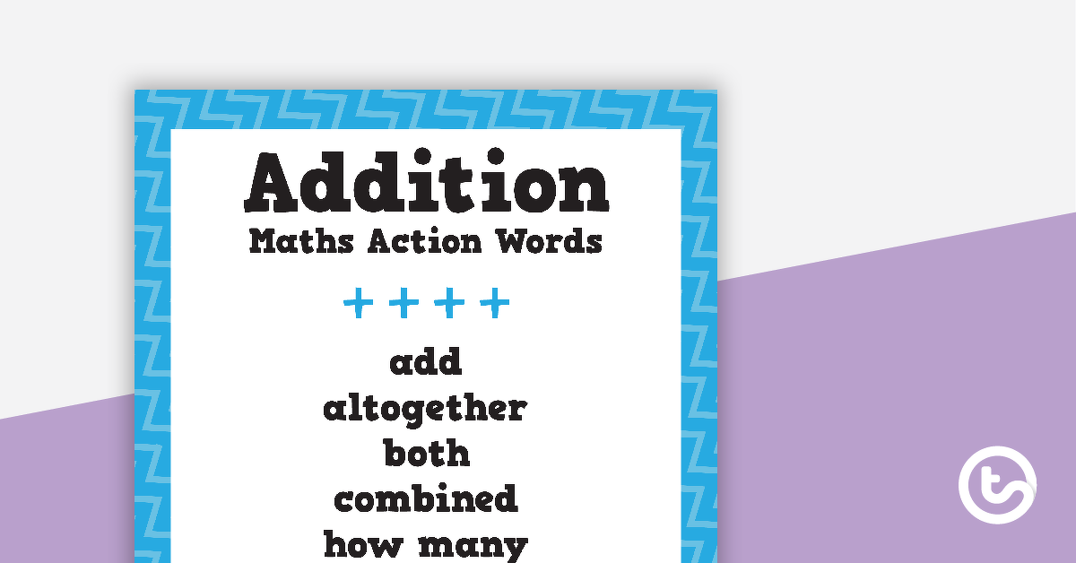 Maths Action Words Addition Subtraction Multiplication Division Equals Teach Starter